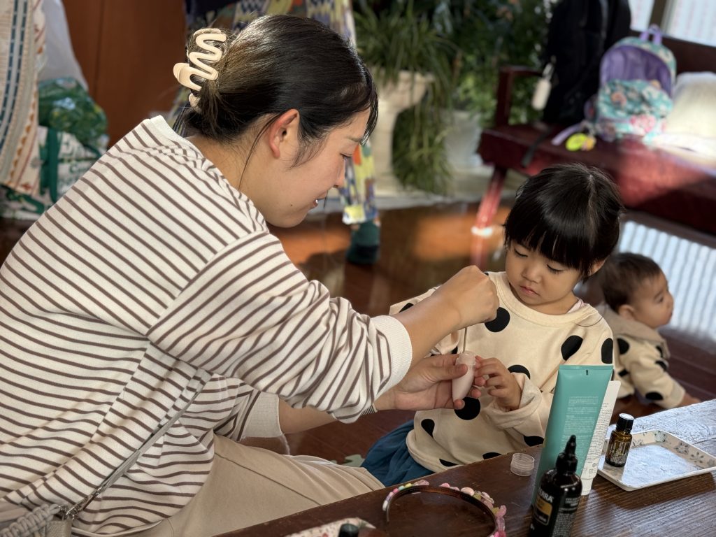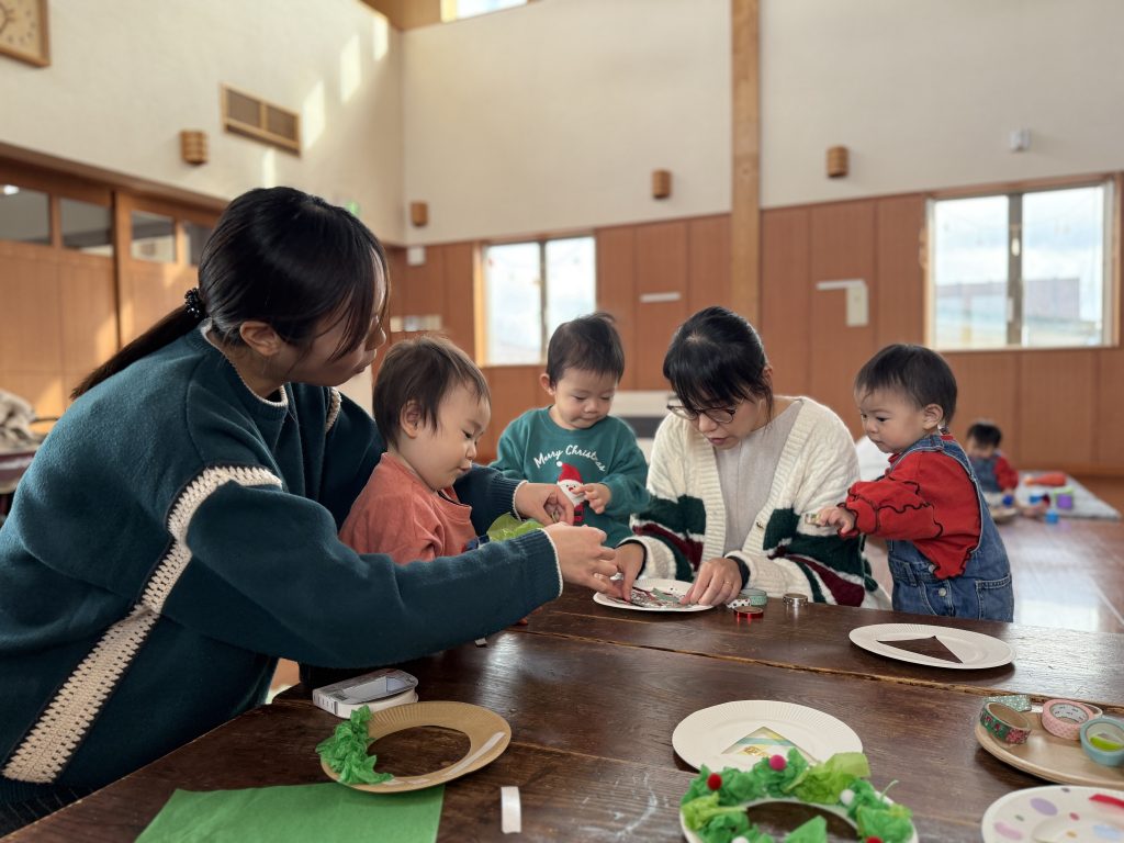 イベント2025.12.24 子育て支援カフェ~クリスマスワークショップ~ 明日、クリスマスを迎えます🎄 子育て支援カフェでは、クリスマスリースやツリー、バスボムやハンドクリーム作りなど、親子でのワークショップを開催しました。 どのイベントも、親子で一緒に作りながらクリスマスを待つひとときを楽しく過ごし、素敵な笑顔があふれていました。