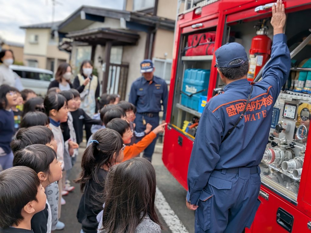 火災の避難訓練後、ぽぷら組のお友達は特別に消防車を見学させてもらいました🚒
