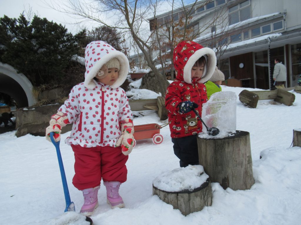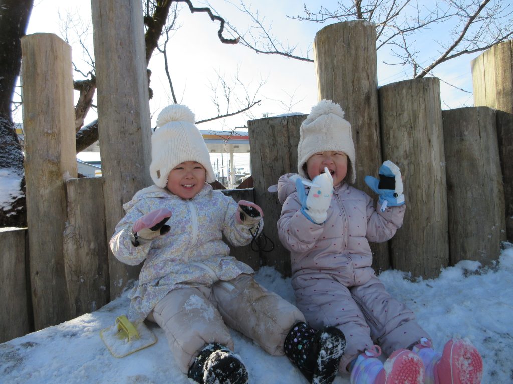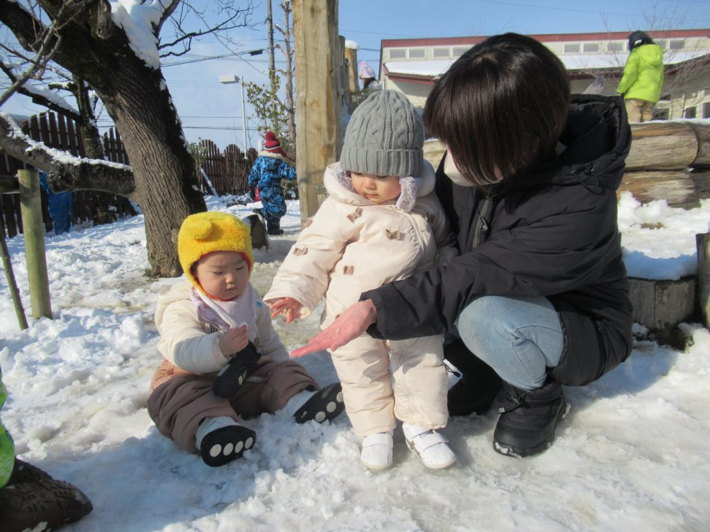 今年の冬は雪がたくさん降りました! めいっぱい雪あそびを楽しんだ未満児のお友達の様子です⛄