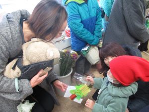 イエス・キリストがお生まれになった喜びを讃美歌や『メリークリスマス』という言葉と共に、3歳児~5歳児の子ども達が作ったプレゼントを、年少組が代表で日詰商店街に行き、多くの方々に届けてきました。作ったプレゼントを手渡しながら地域の方との触れ合いを通してクリスマスの喜びを分かち会えた時となりました。
